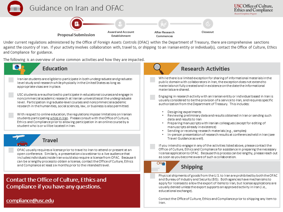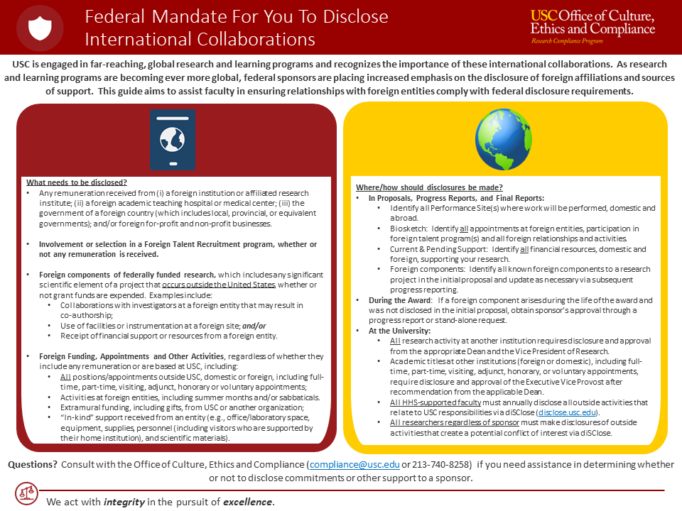 If you have any questions, please do not hesitate to contact our office at compliance@usc.edu, and if you have suggestions for additional one-sheet topics, please submit your idea via the Research Compliance Suggestion Box.